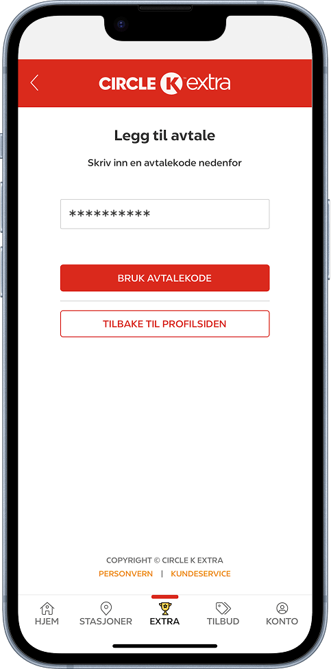 - Last ned Circle K-appen i App Store eller Google Play og registrer deg i Circle K Extra. Det er helt gratis.